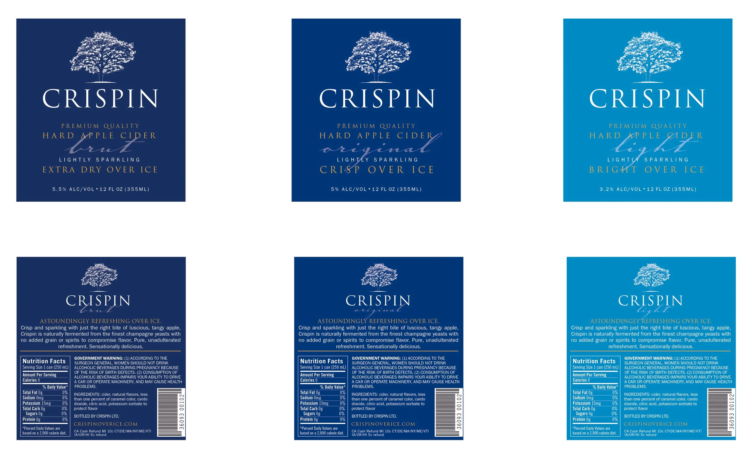 The entrepreneur behind Crispin was no stranger to the beverage world—having already built a successful brand, he came to us with the name 'Crispin' in place and a strong, distinctive vision. Our task: bring that vision to life by developing the full Crispin brand, including three unique flavor profiles, packaging design, and launch-ready advertising concepts.